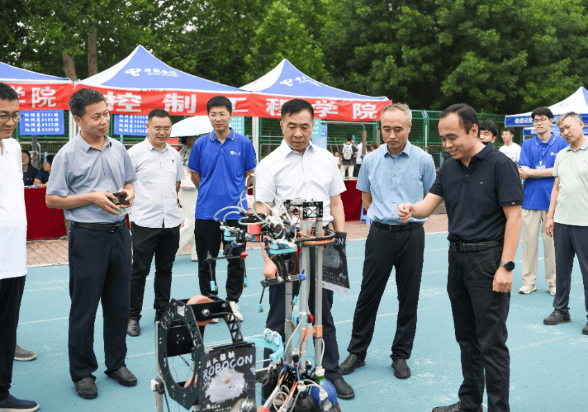 校党委书记张玉宝和校长赵勇在大学生创新创业中心主任吕江涛及相关人员的陪同下,逐一参观了各团队的展示区域,认真听取了团队成员的讲解,并与之亲切交流。校领导对创新创业教育的成果表示充分肯定,鼓励同学们要继续发扬创新精神,勇于探索未知领域。他们表示,学校将会一如既往地支持大学生创新创业活动,为同学们提供更好的平台和资源。