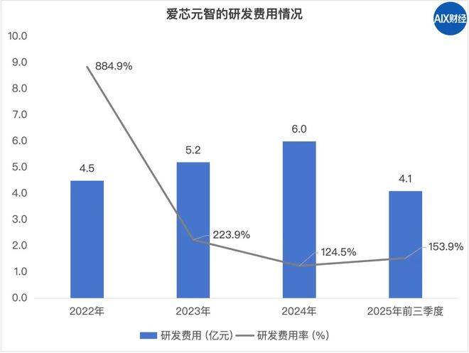 在爱芯元智的支出结构中,研发费用常年超过收入的一倍以上。2024年,公司的研发费用为5.9亿元,研发费用率高达125%。换句线元在研发上。黑芝麻智能的情况更夸张,2024年的研发费用率高达302%。